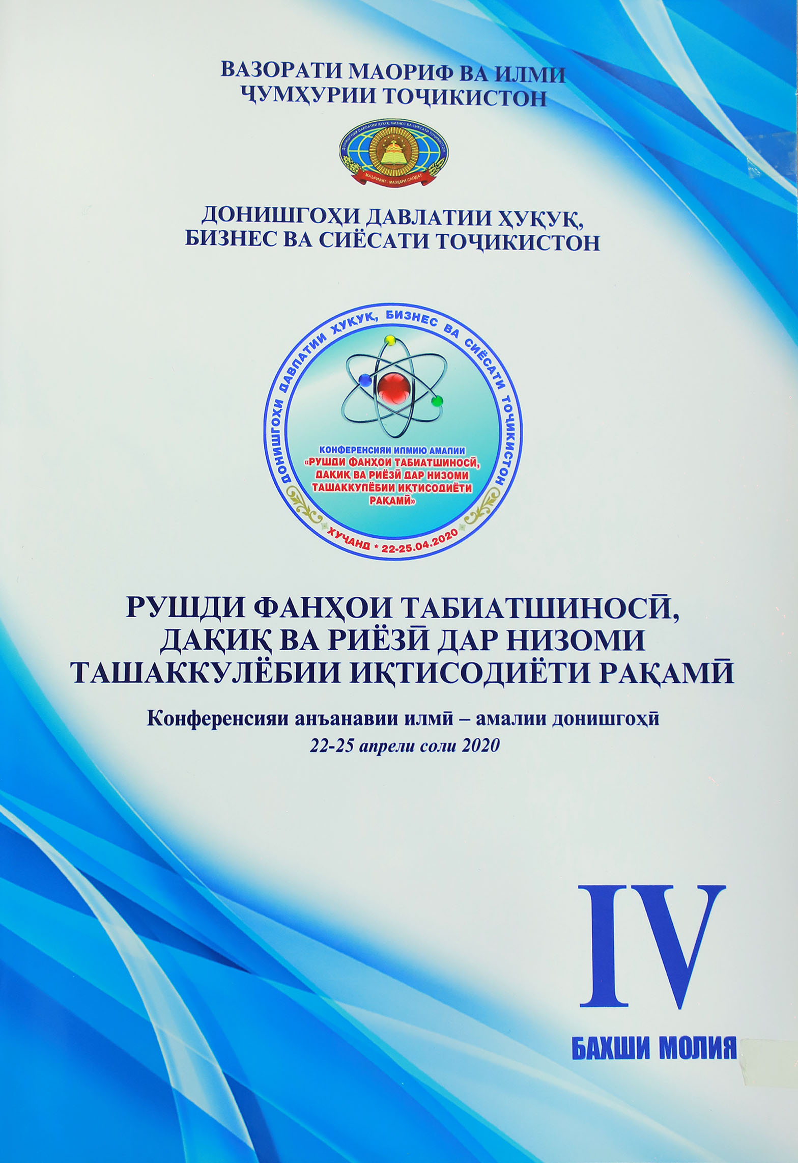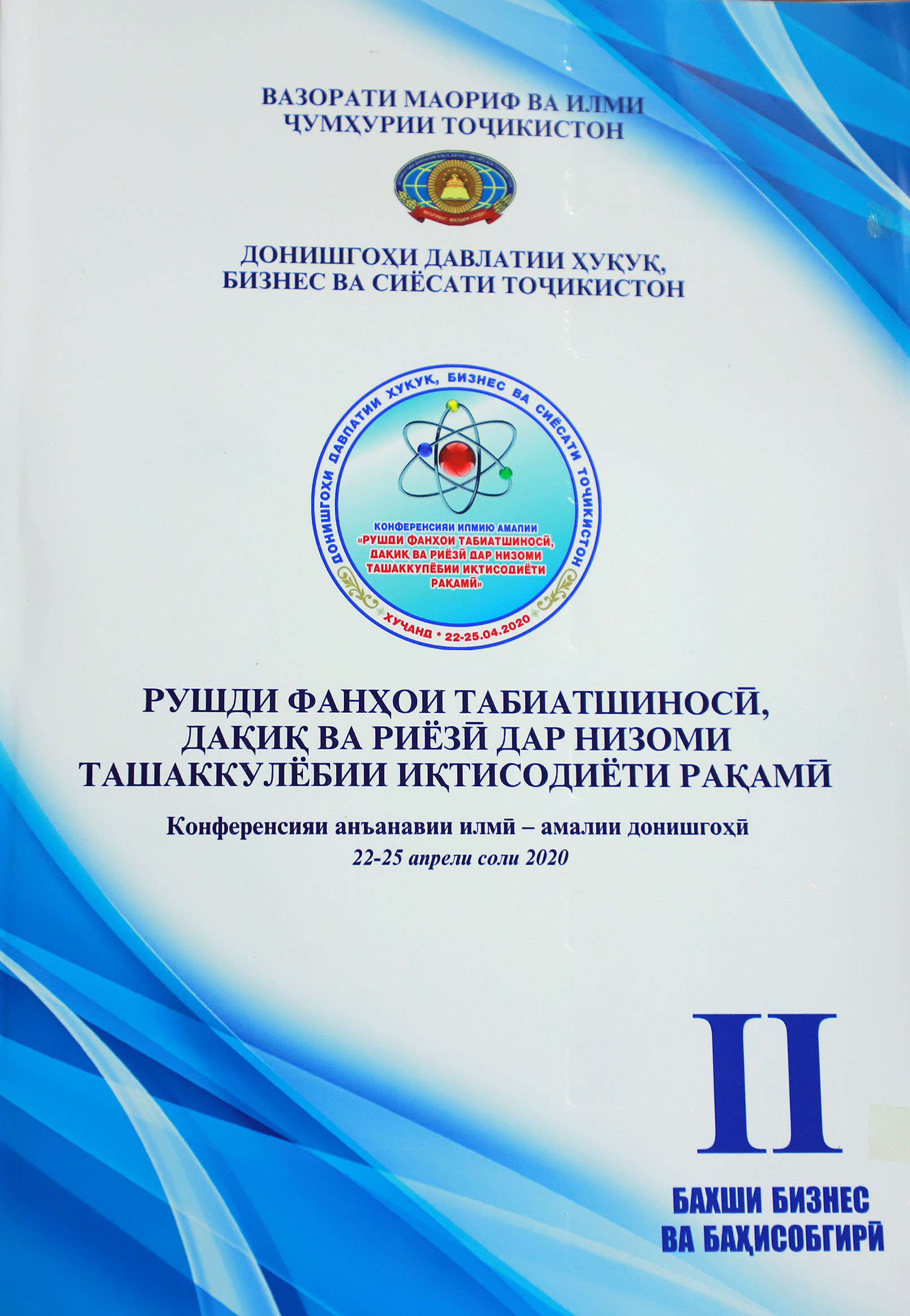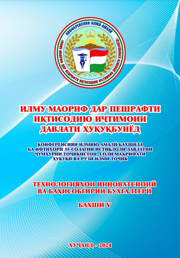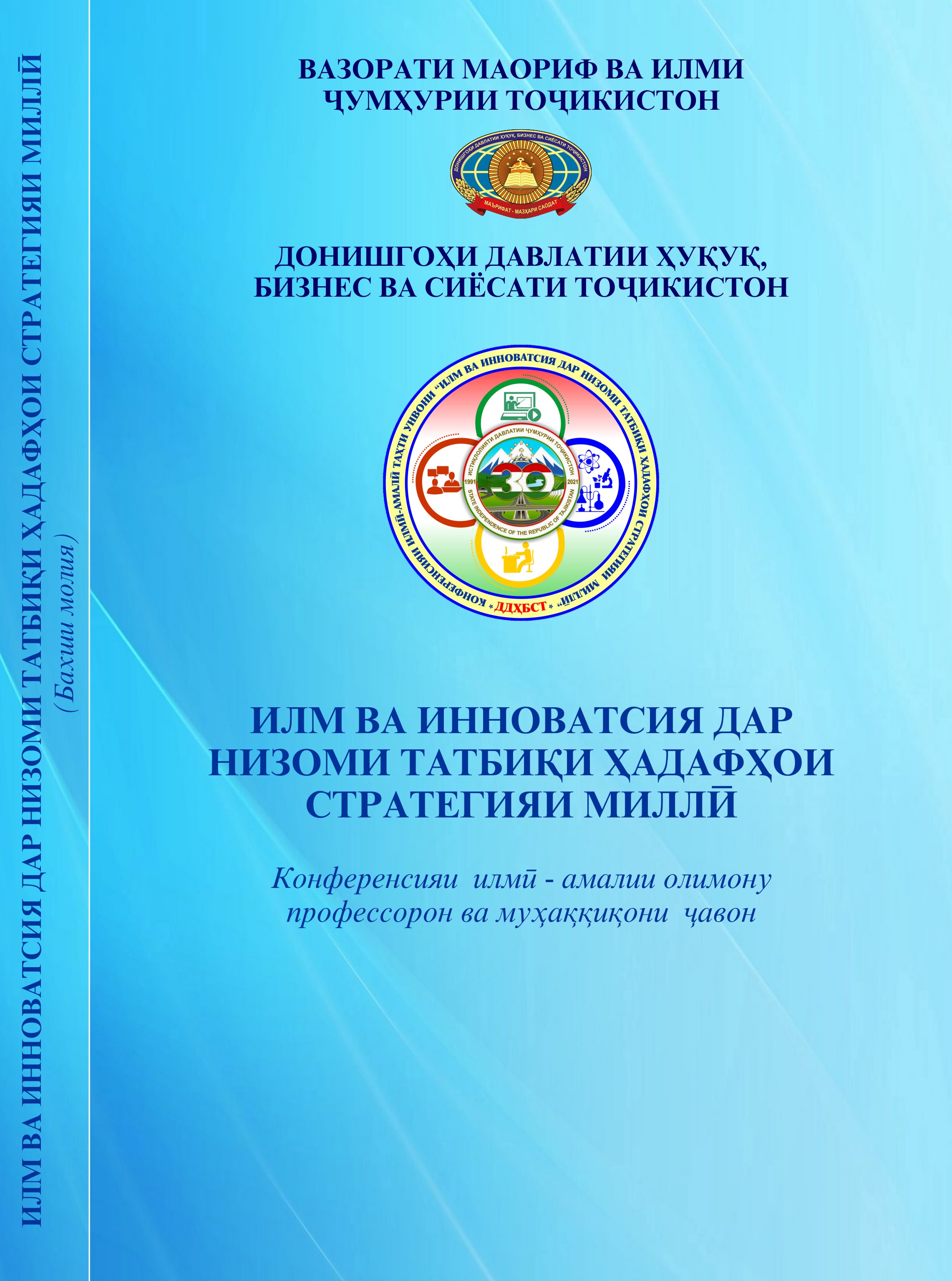 Адабиёти тозанашр 2017201820192020202120222023202420252017 Ҷавонон ва масъалаҳои муосири ҷомеа Ҷавонон пайрави Пешвои миллат Рушди илм дар замони Истиқлол Рушди илм дар замони Истиқлол – 2 2018 Масоили мубрами илми ҳуқуқшиносии муосир ва роҳҳои ҳалли онҳо: назария ва амалия-1 Масоили мубрами илми ҳуқуқшиносии муосир ва роҳҳои ҳалли онҳо: назария ва амалия – 2 Ҳамкориҳои байналмилалии муассисаҳои таълимӣ омили муҳими баланд бардоштани сифати таълим 2019 Илм ва инноватсия баҳри иҷрои ҳадафҳои миллӣ Ҳуқуқшиносӣ Илм ва инноватсия баҳри иҷрои ҳадафҳои миллӣ Сиёсатшиносӣ Илм ва инноватсия баҳри иҷрои ҳадафҳои миллӣ Молия Илм ва инноватсия баҳри иҷрои ҳадафҳои миллӣ Бизнес ва идоракунӣ Илм ва инноватсия баҳри иҷрои ҳадафҳои миллӣ Инноватсия ва телекоммуникатсия Илм ва инноватсия баҳри иҷрои ҳадафҳои миллӣ Баҳисобгирӣ ва андоз Ҷавонон дар пайроҳаи таҳқиқ Нақши технологияҳои информатсионӣ дар баланд бароштани сифати таълим Робитаҳои кишварҳои осиёи марказӣ: Ҳолат ва дурнамо Робитаҳои кишварҳои осиёи марказӣ: Ҳолат ва дурнамо 2020 Такмили қонунгузории зиддикоррупсионӣ: муаммоҳо ва дурнамои рушд Ҷавонон дар пайроҳаи таҳқиқ Рушди фанҳои табиатшиносӣ, дақиқ ва риёзӣ дар низоми ташаккулёбии иқтисодиёти рақамӣ Ҳуқуқшиносӣ Рушди фанҳои табиатшиносӣ, дақиқ ва риёзӣ дар низоми ташаккулёбии иқтисодиёти рақамӣ Бизнес ва Баҳисобгирӣ Рушди фанҳои табиатшиносӣ, дақиқ ва риёзӣ дар низоми ташаккулёбии иқтисодиёти рақамӣ Сиёсатшиносӣ Рушди фанҳои табиатшиносӣ, дақиқ ва риёзӣ дар низоми ташаккулёбии иқтисодиёти рақамӣ Молия Рушди фанҳои табиатшиносӣ, дақиқ ва риёзӣ дар низоми ташаккулёбии иқтисодиёти рақамӣ Инноватсия ва телеммуникатсия Андалеби боғистони адаб Таъмини рушди устувор ва рақобатпазирии иқтисодиёти Тоҷикистон дар шароити ҷаҳонишавӣ 2021 Саноатикунонии босуръат – асоси ташаккули иқтисодиёти инноватсиноӣ Ҳамкориҳои байналмилалии Ҷумҳурии Тоҷикистон дар шароити рақамикунонии иқтисодиёт: ҳолат ва дурнамо Консепсияи миллии тарбия-асоси тарбияи насли созандаю бунёдкор Усулҳои инноватсионии таълим: ҳолати муосир ва дурнамои такомул Иқтисодиёти Тоҷикистон дар солҳои истиқлолият: таърих, хусусият ва дурнамои рушд Ҷавонон дар пайроҳаи таҳқиқ Илм ва инноватсия дар низоми татбиқи ҳадафҳои Стратегияи миллӣ -Баҳисобгирӣ ва андоз Илм ва инноватсия дар низоми татбиқи ҳадафҳои Стратегияи миллӣ -Инноватсия ва телекоммуникатсия Илм ва инноватсия дар низоми татбиқи ҳадафҳои Стратегияи миллӣ -Бизнес ва идоракунӣ Илм ва инноватсия дар низоми татбиқи ҳадафҳои Стратегияи миллӣ -Молия Илм ва инноватсия дар низоми татбиқи ҳадафҳои Стратегияи миллӣ -Сиёсатшиносӣ Илм ва инноватсия дар низоми татбиқи ҳадафҳои Стратегияи миллӣ -Ҳуқуқшиносӣ СҲШ ДАР ИҚТИСОДИЁТИ ҶАҲОНӢ: 20 соли фаъолияти самарабахш ва дурнамо Робитаҳои байналмилалии Донишгоҳи Давлатии Ҳуқуқ, Бизнес ва Сиёсати Тоҷикистон 2022 Таъмини рушди устувор ва рақобатпазирии иқтисодиёти миллӣ дар шароити ҷаҳонишавӣ Иҷлосияи XVI Шӯрои Олӣ ҷумҳурии Тоҷикистон ва нақши пешвои миллат мӯҳтарам Эмомалӣ Раҳмон дар бунёди давлатдории миллӣ Иҷлосияи XVI Шӯрои Олӣ дар рушди Тоҷикистони соҳибистиқлол Истифодаи усулҳои инноватсионӣ дар татбиқи тадқиқоти байнифаннӣ дар муассисаҳои таҳсилоти олии касбӣ Ҷавонон дар пайроҳаи таҳқиқ Муаммоҳои мубрами методикаи таълими фанҳои риёзӣ, дақиқ ва табиӣ дар муасси