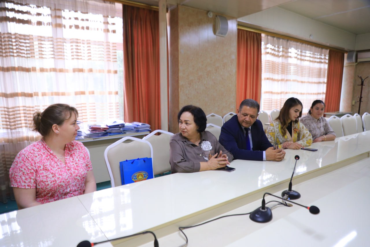 On May 5, 2025, Tamara Polyakova held an official meeting with the university’s acting rector, vice-rector for academic affairs, candidate of legal sciences, Associate Professor Muminzoda Sh.A., and vice-rector for International Relations, Doctor of Economics, Professor Rizozoda T.R. During the meeting, the parties exchanged views on expanding bilateral cooperation, academic exchange between teachers and students, and implementing joint projects under the Erasmus+ program.