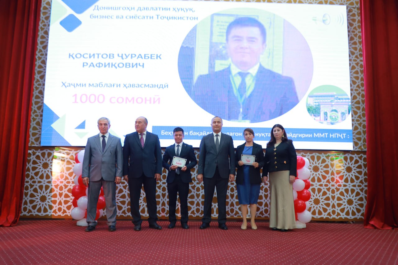 Ҳамзамон ба гурӯҳи калони кормандону устодони донишгоҳ, ки дар марҳилаи тарғиботӣ ҷиҳати ҷалби довталабон ба донишгоҳ саҳми арзанда гузоштаанд, Ифтихорномаву Сипосномаҳо ва маблағҳои пулии раёсати донишгоҳ тақдим карда шуд.