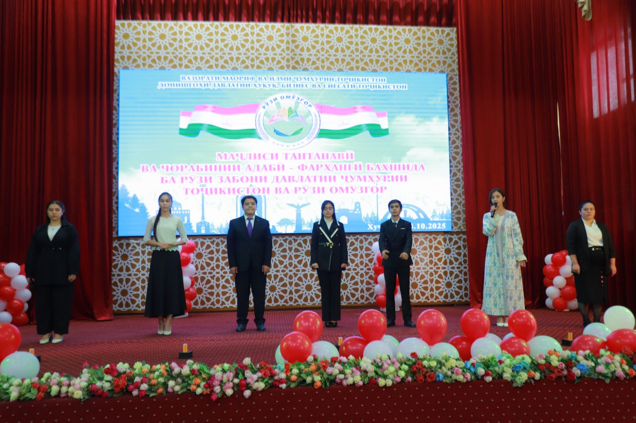 Ба ифтихори гиромидошти санаҳои муқаддасу фархунда – Рӯзи забони давлатии Ҷумҳурии Тоҷикистон ва Рӯзи омӯзгор дар Донишгоҳи давлатии ҳуқуқ, бизнес ва сиёсати Тоҷикистон чорабинии тантанавӣ таҳти унвони «Забон – ҳастии миллат» ва «Ҳаққи устод аз падар беш аст” баргузор гардид.