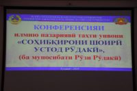 Затем были заслушаны научные доклады известных специалистов: Саидумон Саидов — «Основные идеи стихов и вечные произведения Абуабдуллоха Рудаки», Шавкат Рустамов — «Рудаки и вопросы источниковедения в его произведениях», Нурихон Охунджонова — «Использование художественного творчества «тазмин и назира» в стихотворениях Рудаки», Мухбирахон Негматова — «Мудрость Рудаки и её воспитательное значение».