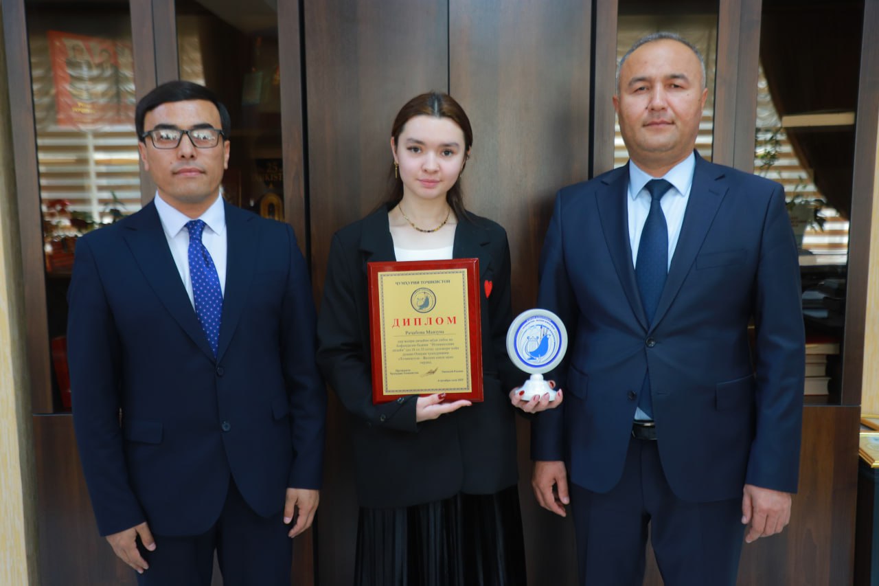 Ғолибон бо диплом, медал ва ҷоизаҳои пулӣ қадрдонӣ гардиданд. Ба ифтихори ин дастовардҳо, ректори донишгоҳ Шероз Мӯминзода ғолибонро ба ҳузур пазируфта, ба онҳо барои заҳмату кӯшиш ва муаррифии шоистаи донишгоҳ изҳори сипос намуд.