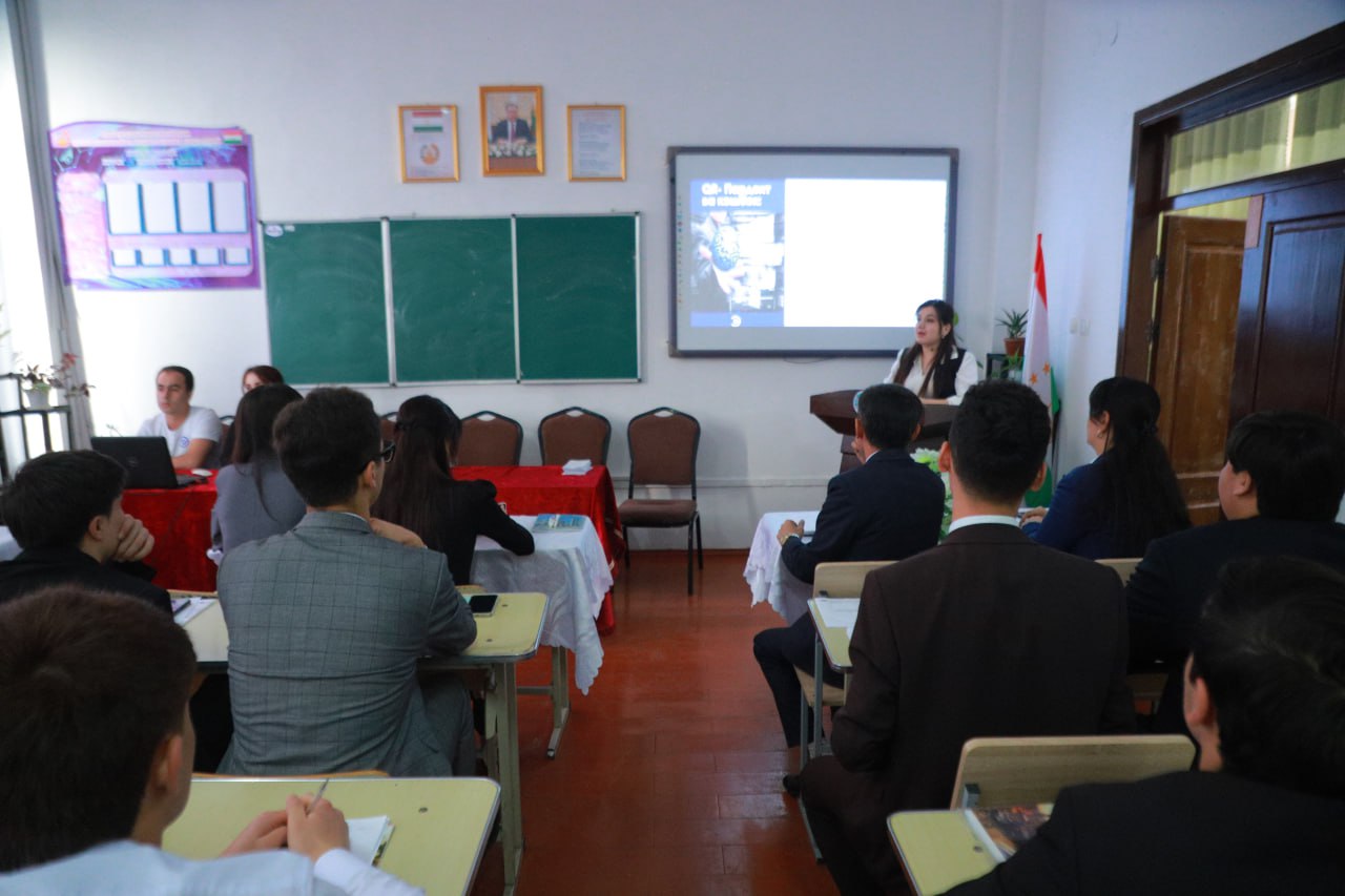 Тибқи қисматхои дарс мутахассисони ҶСК «Бонки Эсхата» баромад намуда, доир ба ҳамёни электронии «Эсхата Онлайн», амалиётҳо ва корҳое, ки тавассути технологияҳои рақами дар бонк иҷро мешавад, аз ҷумла, навбати электронӣ ба донишҷуён маълумоти муфассал доданд.