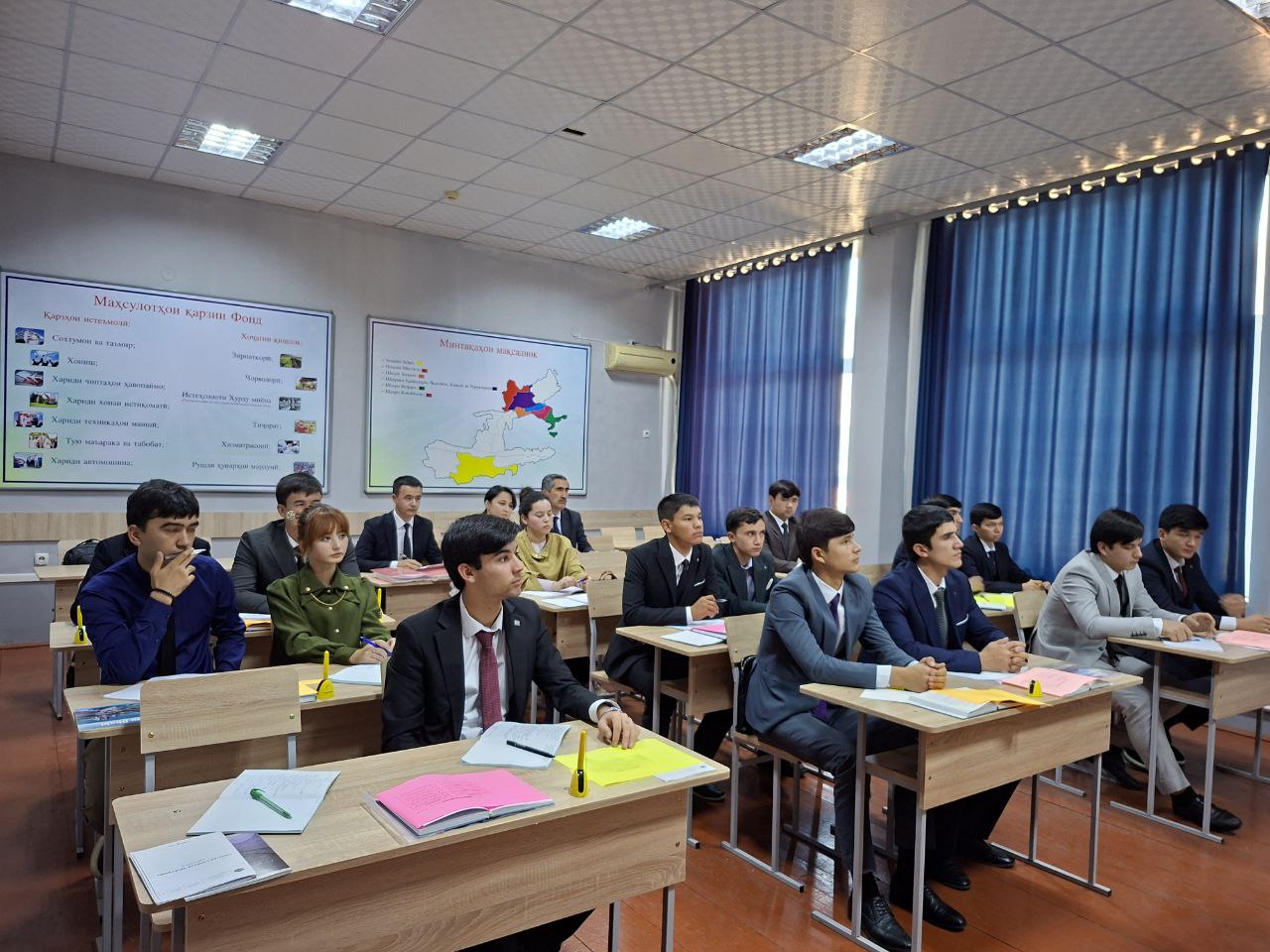 Дар машғулият мутахассиси шуъбаи идоракунӣ ва мониторинги сифати таҳсилот, номзади илмҳои таърих, дотсент Каримова К.О., мудири кафедраи сиёсатшиносӣ, номзади илмҳои сиёсӣ, дотсент Якубов Ҷ.К. ва омӯзгорони кафедра иштирок намуданд.