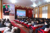 Нахуст, ректори донишгоҳ Шероз Мӯминзода иштирокчиёнро табрик намуда, дар бораи ин санаи таърихӣ ва муқаддас будани он барои мардуми Тоҷикистон ва хизматҳои беназири Асосгузори сулҳу ваҳдати миллӣ – Пешвои миллат, муҳтарам Эмомалӣ Раҳмон сухан намуд. Ӯ иброз дошт, ки Иҷлосияи XVI Шурои Олии Ҷумҳурии Тоҷикистон рўйдоди воқеан таърихӣ мебошад, зеро маҳз дар ҳамин иҷлосия тақдири ояндаи давлати миллии тоҷикон тарҳрезӣ гардид. Таҷлили Рӯзи Президент ва солгарди Иҷлосияи тақдирсоз чун ду санаи муҳиму муборак барои ҳар як шаҳрванди кишвар, махсусан барои ҷавонон, сабақи равшани ватандӯстӣ, масъулиятшиносӣ ва садоқат ба арзишҳои миллӣ мебошад. Ташаббусҳои Сарвари давлатамон ҳамчун достони мардонагию қаҳрамониву ҷасорат, бунёдкорию созандагӣ ва навҷӯию навовариҳо дар саҳифаҳои таърихи миллати фарҳангию куҳанбунёдамон бо ҳарфҳои заррин абадӣ нақш бастааст. Сиёсати пешгирифтаи Президенти Ҷумҳурии Тоҷикистон муҳтарам Эмомалӣ Раҳмон моро вазифадор менамояд, ки барои амалӣ гардидани ҳадафҳои давлату ҳукумат дар самти таҳкими рукнҳои давлатдории навини Тоҷикистон ва баланд бардоштани сатҳи некуаҳволии аҳолӣ тамоми неру, қудрат, тавоноӣ ва донишу таҷрибаамонро ба кор барем, илова намуд Шероз Мӯминзода.