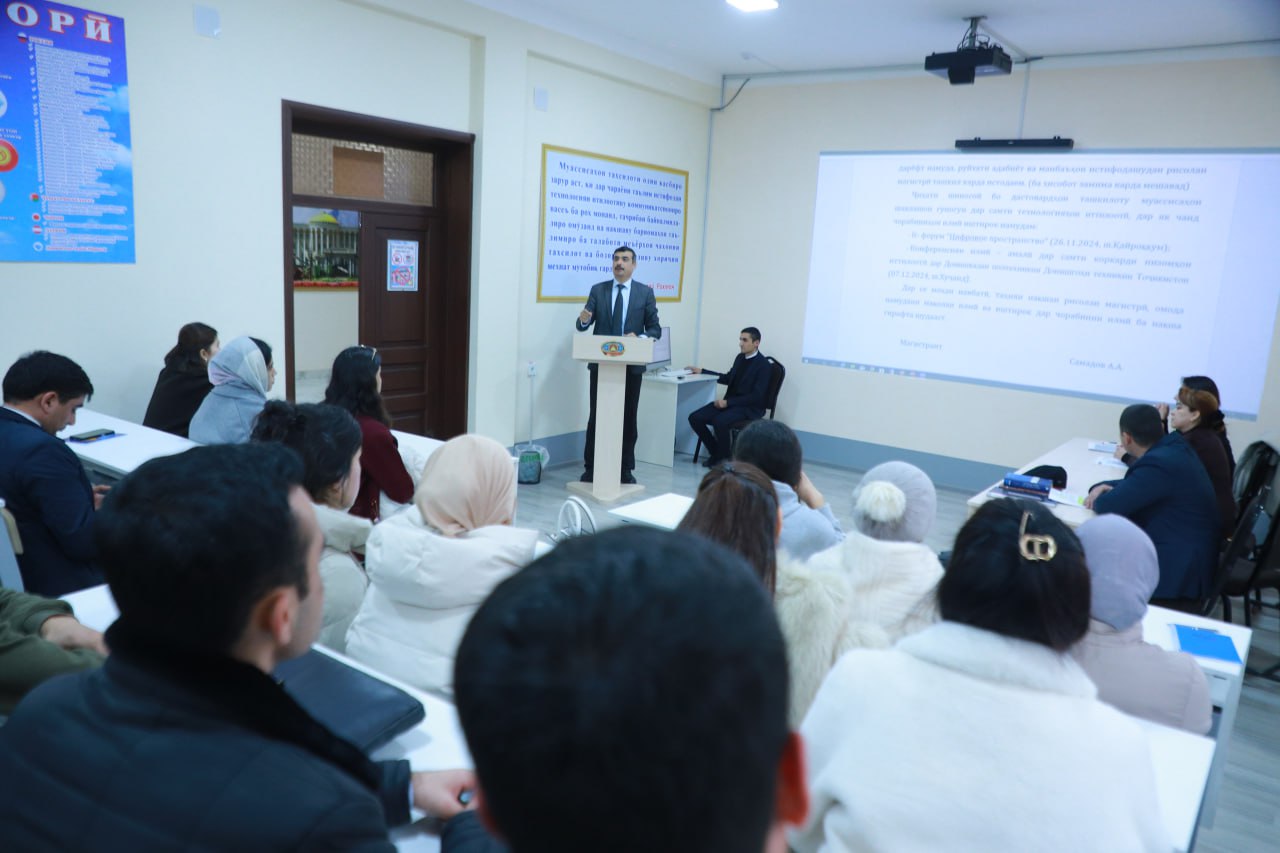 The event was opened by the head of the Master’s Department, Candidate of Economical Sciences, Associate Professor A.Kh. Kurbonaliev, who provided first-year master’s students with information on conditions and opportunities of the Master’s Department, effective use of the university’s scientific and electronic libraries, engagement in research activities, acquisition of professional skills, and mastery of innovative technologies. He also highlighted university’s broad opportunities for participation in national and international competitions, conferences, availability of favorable conditions for developing modern skills in innovative laboratories, and rules for using university’s information and communication technologies.