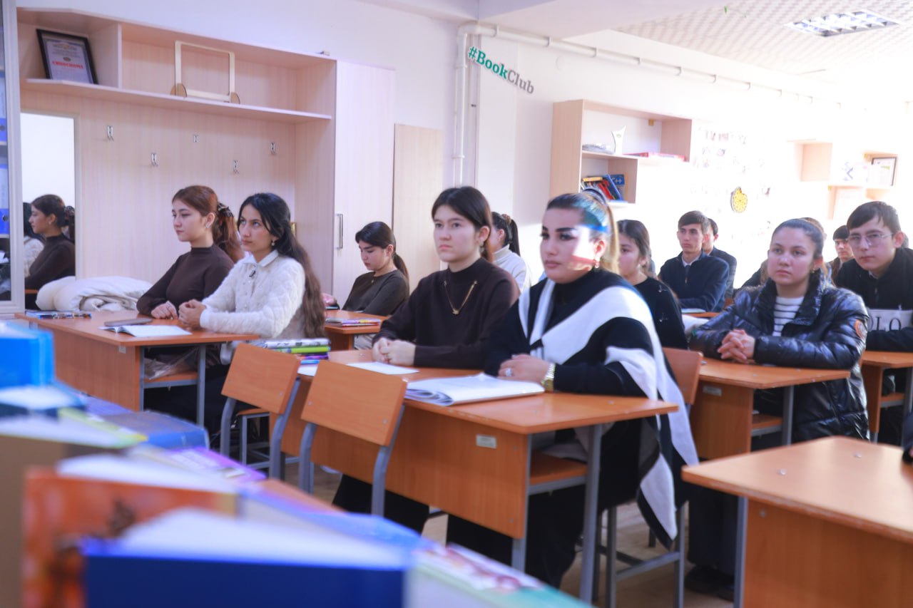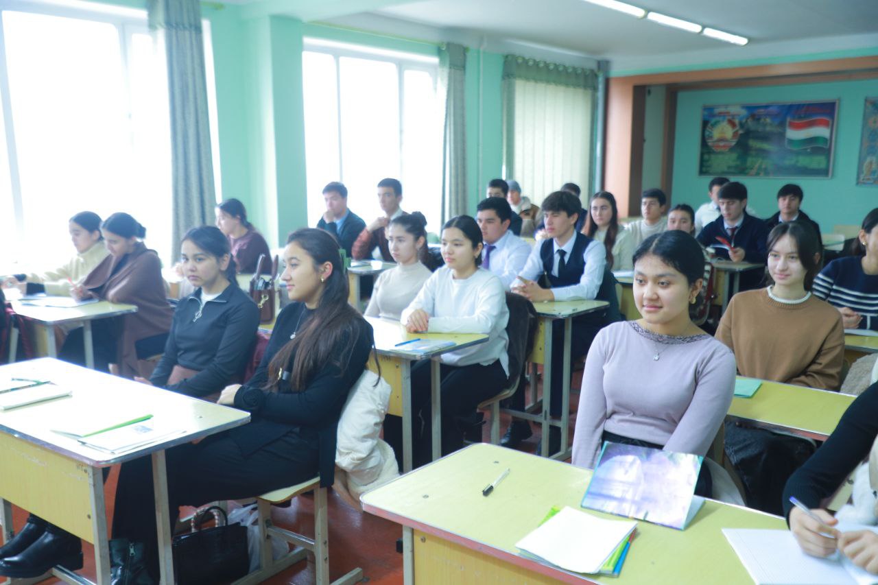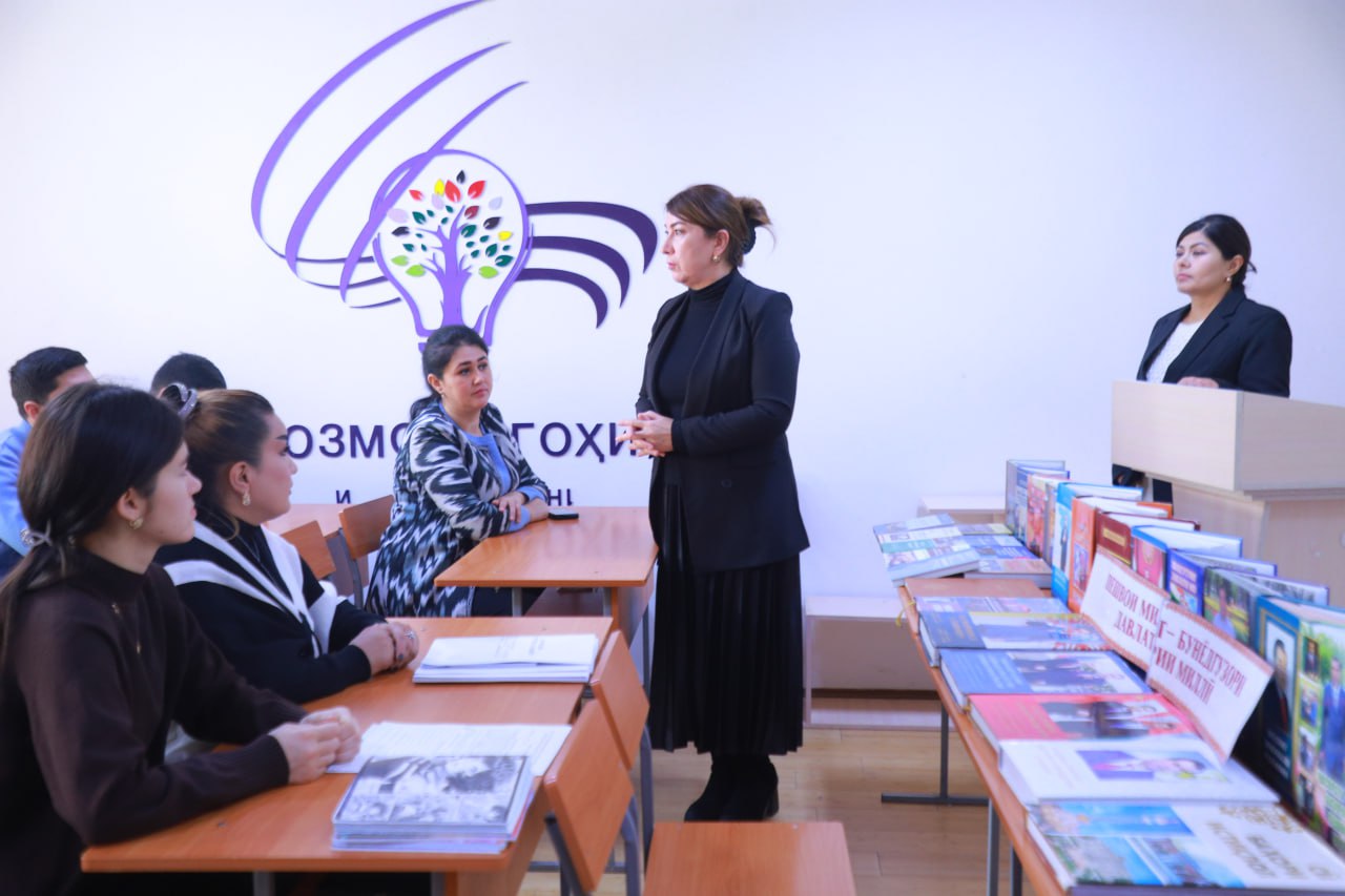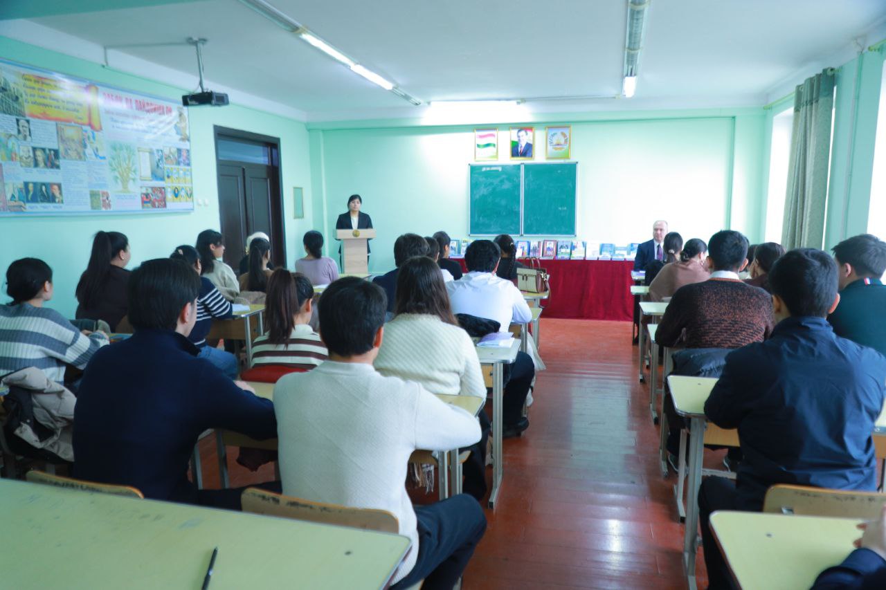 Зимни муаррифӣ мутахассиси китобхонаи илмӣ Умарова У.Х. дар ҳузури донишҷӯён гуфт, ки тарбияи ватандӯстӣ ва хештаншиносӣ омили муҳимми рушди давлатдории миллӣ буда, дар навбати худ давлатдории миллӣ ба тарбия ва баланд гардидани ҳисси ватандӯстии ҳар як сокини давлат, бахусус ҷавонон мусоидат менамояд. Ҷавононро ҳамчун ояндасозони давлату миллат, қувваи пешбаранда ва неруи ҳаракатдиҳандаи ҷомеа эътироф кардани Сарвари давлат боиси болидаруҳӣ ва ифтихори миллии ин қишри ояндасоз гардида, эътимоди онҳоро ба фардои дурахшон қавӣ ва масъулияташонро баҳри ҳифзи дастовардҳои истиқлоли давлатӣ дучандменамояд.