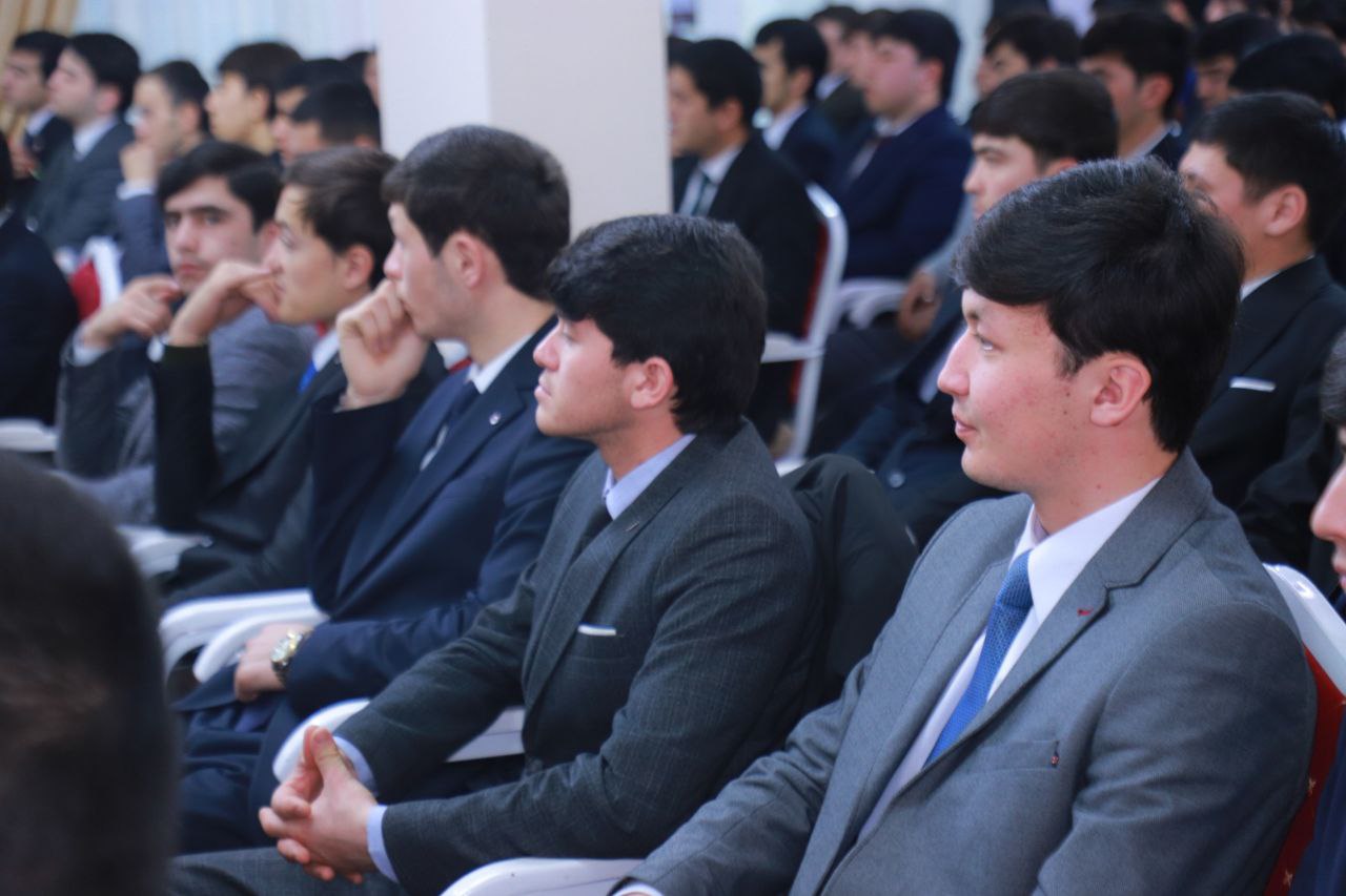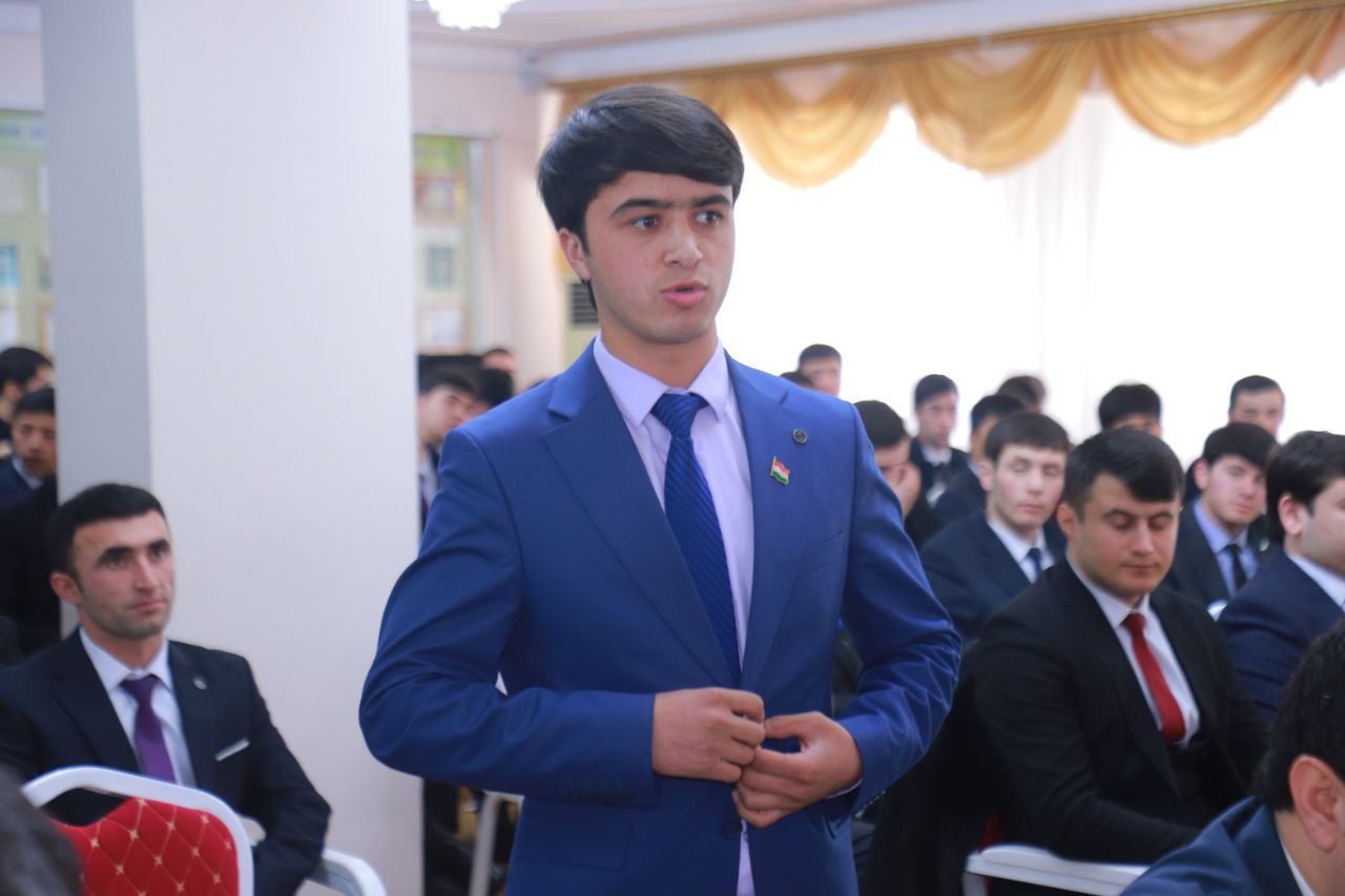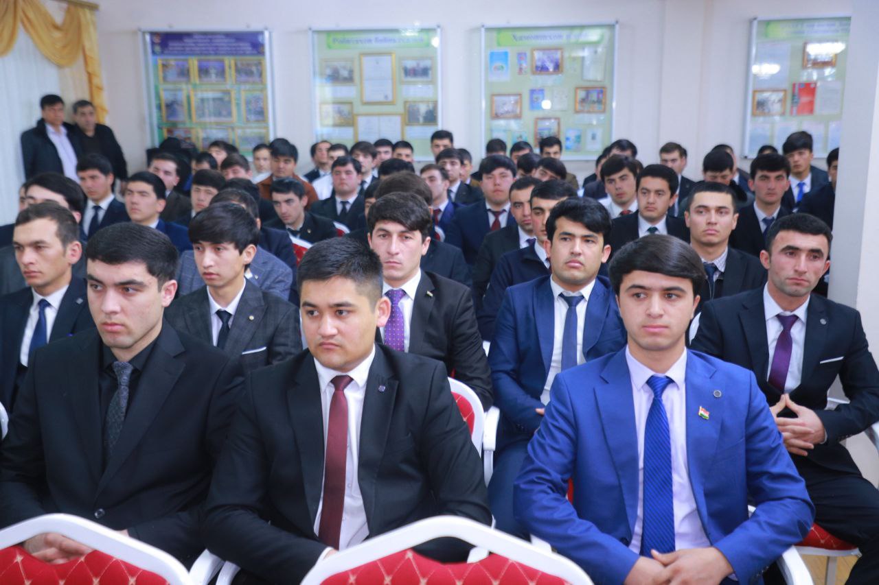Олимҷон Саидзода ва ҳайати омӯзгорону донишҷӯён иштирок намуданд. Мулоқотро ректори донишгоҳ Шероз Мӯминзода ифтитоҳ намуда, нақши ҷавононро дар таҳкими пояҳои давлатдорӣ муҳим арзёбӣ кард.