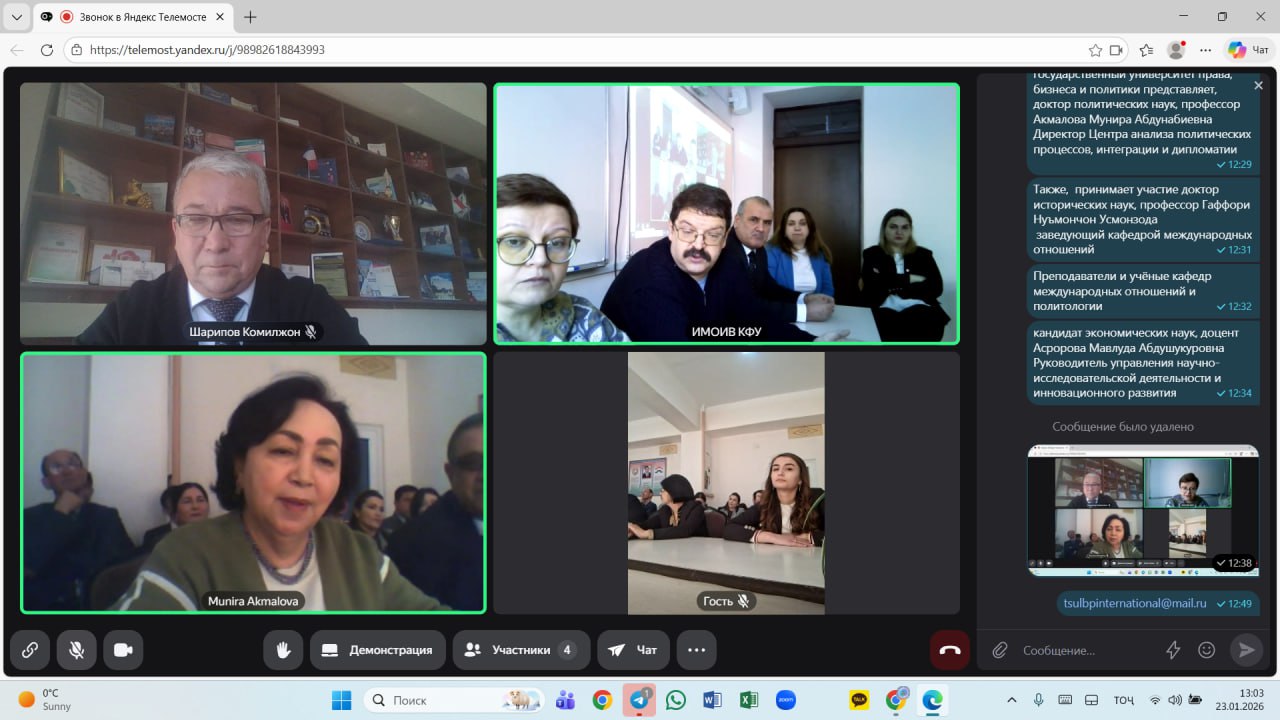 The virtual meeting was attended by professors, lecturers, and students of the Faculty of Political Science and International Relations of the Tajik State University of Law, Business and Politics, as well as representatives of the Institute of Global International Studies of Kazan Federal University.