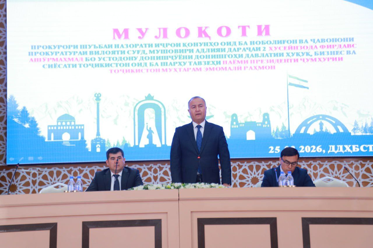 Ҳамчунин, прокурори шуъбаи назорати иҷрои қонунҳо оид ба ноболиғон ва ҷавонони прокуратураи вилояти Суғд, мушовири адлияи дараҷаи 2 Фирдавс Ҳусейнзода зимни баромади худ ба масъалаҳои таҳкими қонуният, пешгирии ҳуқуқвайронкуниҳо миёни ҷавонон ва баланд бардоштани маърифати ҳуқуқии онҳо таваҷҷуҳи махсус зоҳир намуд. Қайд гардид, ки Паём ҷавононро ҳамчун неруи пешбарандаи ҷомеа муаррифӣ намуда, барои фароҳам овардани шароити мусоид ҷиҳати таҳсил, кору фаъолият ва иштироки фаъоли онҳо дар ҳаёти сиёсиву иҷтимоии кишвар заминаи устувор мегузорад.