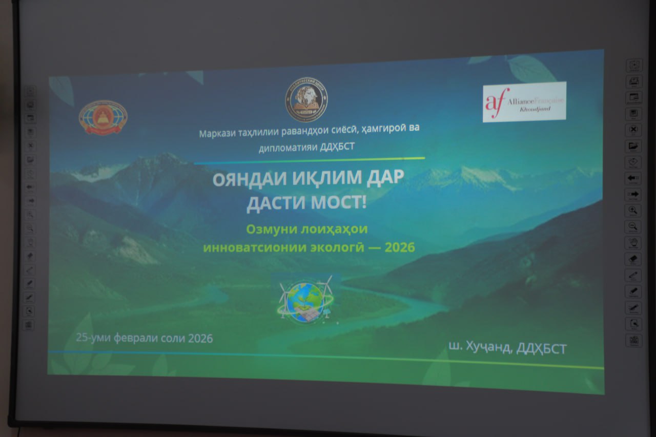 On February 25, 2026, the Student Competition “The Future of Climate is in Our Hands” was held at the Tajik State University of Law, Business and Politics (TSULBP) on the initiative of the Center for Analysis of Political Processes, Integration, and Diplomacy. The event, held in cooperation with an Alliance Française Khoudjand Cultural Center in Khujand, was dedicated to pressing issues of climate change and sustainable development.