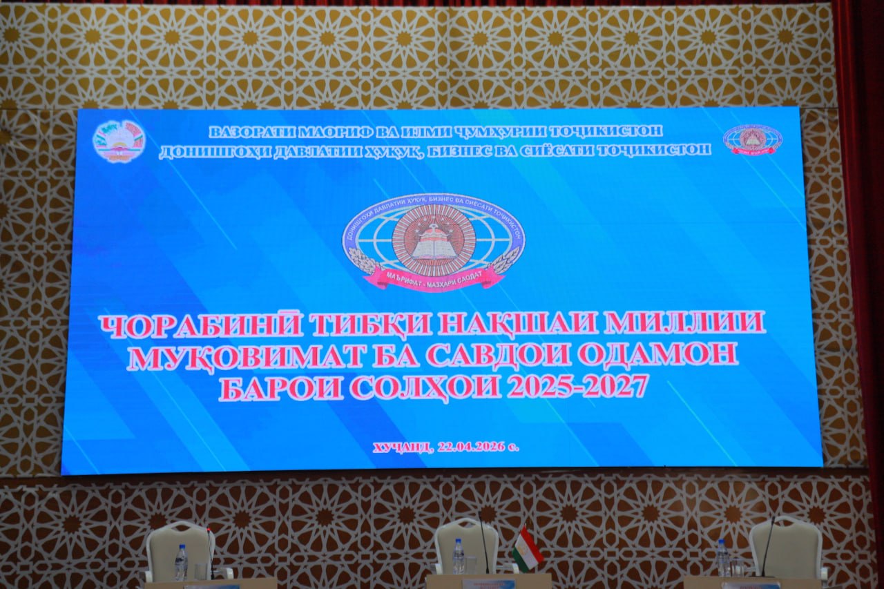 22 апрели соли 2026 дар маҷлисгоҳи Донишгоҳи давлатии ҳуқуқ, бизнес ва сиёсати Тоҷикистон тибқи мактуби Вазорати маориф ва илми Ҷумҳурии Тоҷикистон дар ҳамкорӣ бо Вазорати корҳои дохилии Ҷумҳурии Тоҷикистон, бо мақсади иҷрои Нақшаи миллии муқовимат ба савдои одамон барои солҳои 2025-2027, мулоқоти судманд бо иштироки омӯзгорону донишҷӯёни Донишгоҳ баргузор гардид.