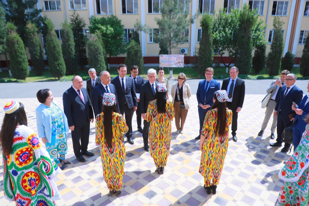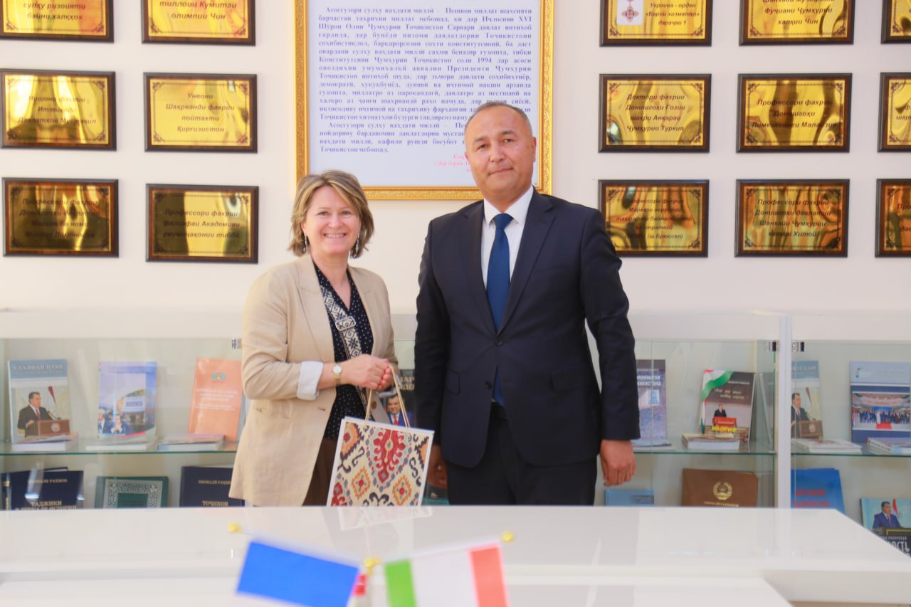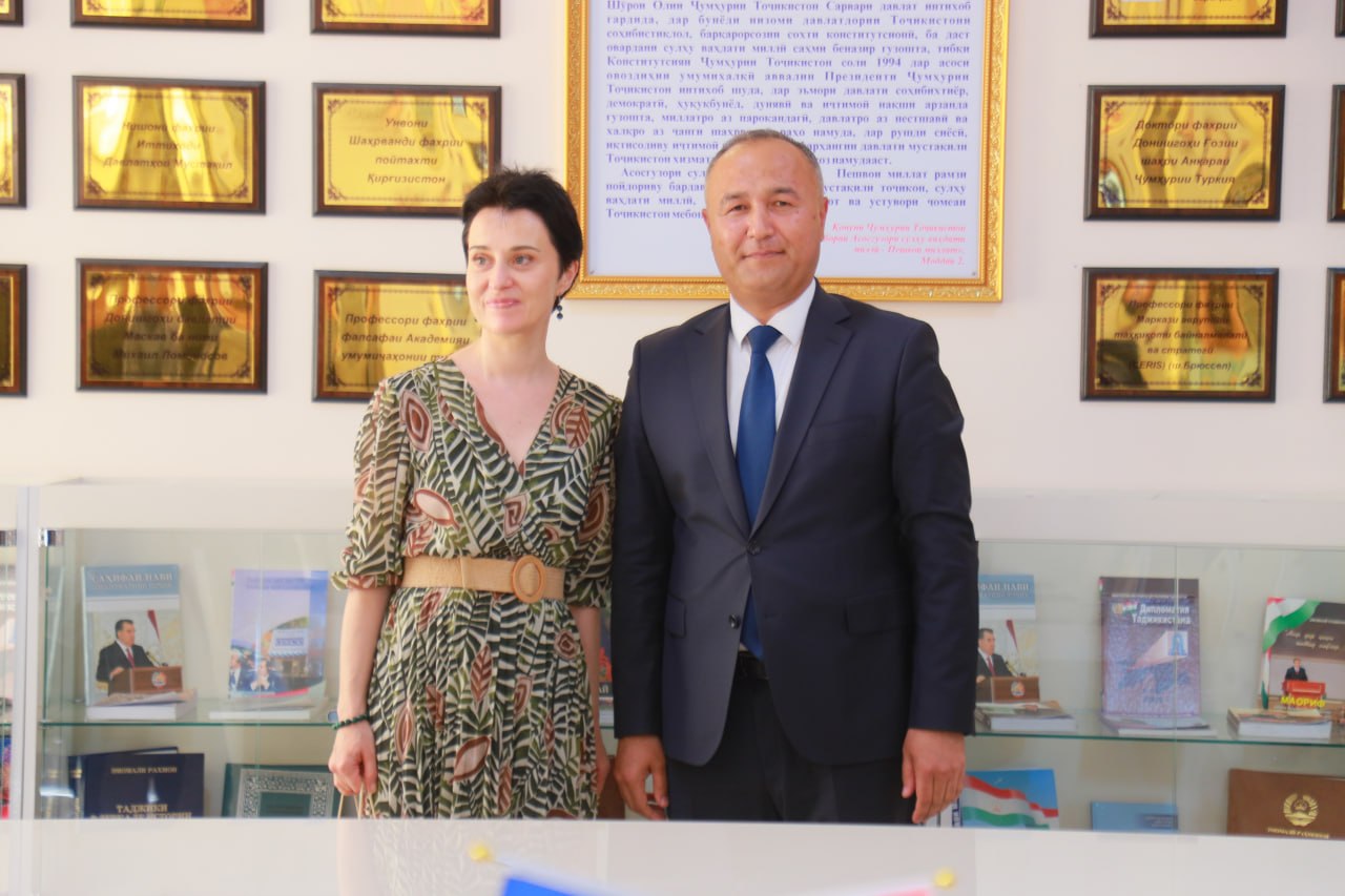 Ректори донишгоҳ Шероз Мӯминзода ва ҳайати роҳбарияти муассиса бо эҳтироми хоса ва фазои гарму самимӣ меҳмононро истиқбол намуданд. Зимни мулоқоти расмӣ ҷонибҳо масъалаҳои муҳими марбут ба таҳкими ҳамкориҳои байналмилалӣ, густариши робитаҳои илмӣ-таҳқиқотӣ, мубодилаи таҷриба ва татбиқи лоиҳаҳои муштараки илмӣ ва таълимиро мавриди баррасӣ қарор доданд.