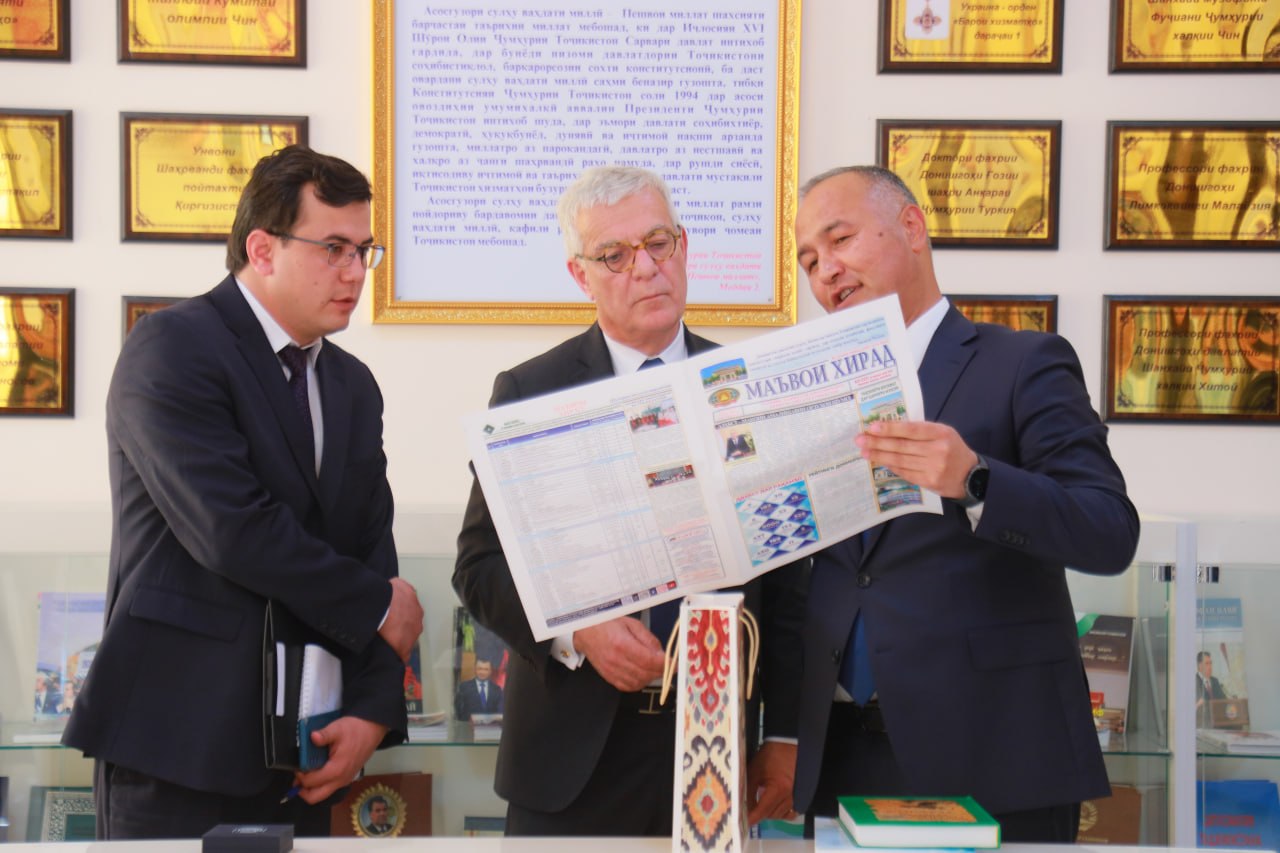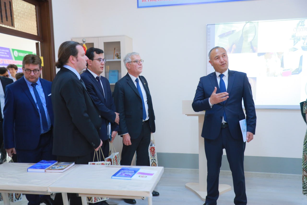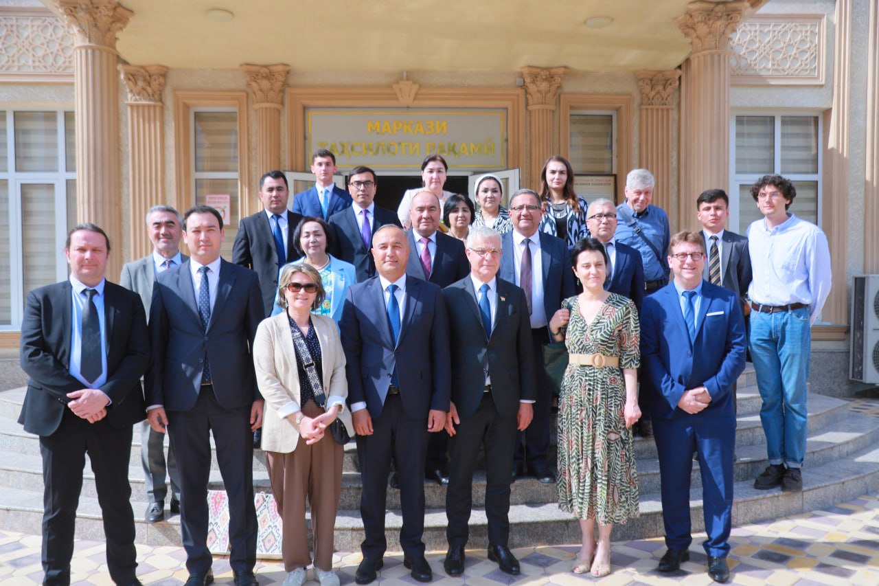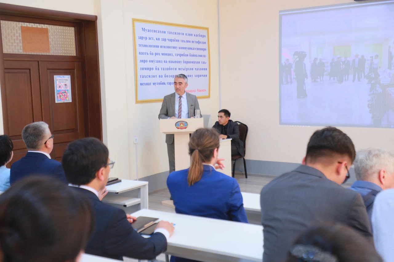 Ректори донишгоҳ Шероз Мӯминзода ва ҳайати роҳбарияти муассиса бо эҳтироми хоса ва фазои гарму самимӣ меҳмононро истиқбол намуданд. Зимни мулоқоти расмӣ ҷонибҳо масъалаҳои муҳими марбут ба таҳкими ҳамкориҳои байналмилалӣ, густариши робитаҳои илмӣ-таҳқиқотӣ, мубодилаи таҷриба ва татбиқи лоиҳаҳои муштараки илмӣ ва таълимиро мавриди баррасӣ қарор доданд.