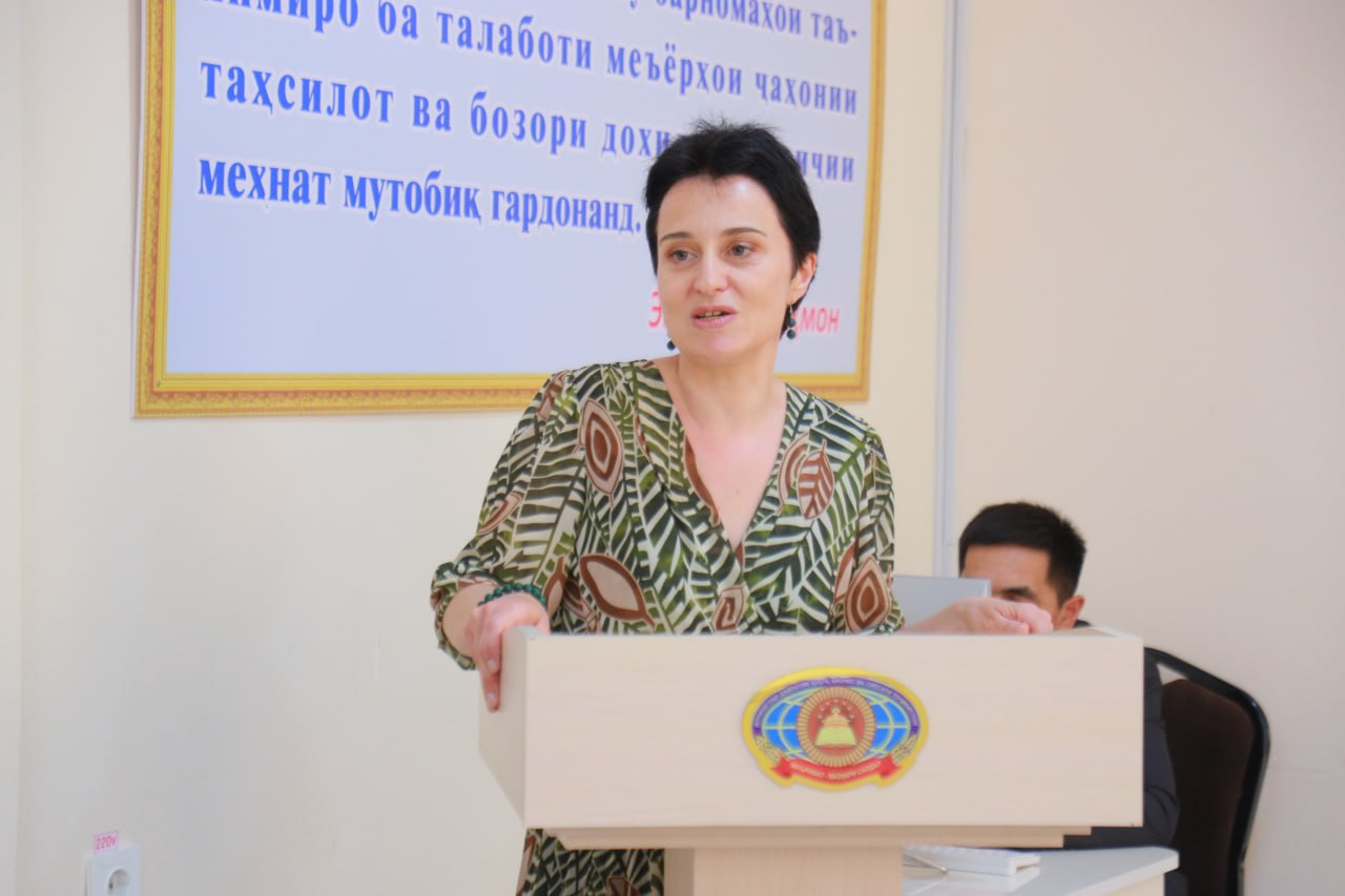 Сипас, директори Маркази ҳамгироӣ ва дипломатияи Донишгоҳ, доктори илмҳои сиёсӣ, профессор Акмалова М. А. оид ба тадбирҳои амалишаванда дар сатҳи миллӣ ва минтақавӣ ҷиҳати ҳифзи муҳити зист ва мутобиқшавӣ ба тағйирёбии иқлим андешаҳои илмӣ баён намуд.