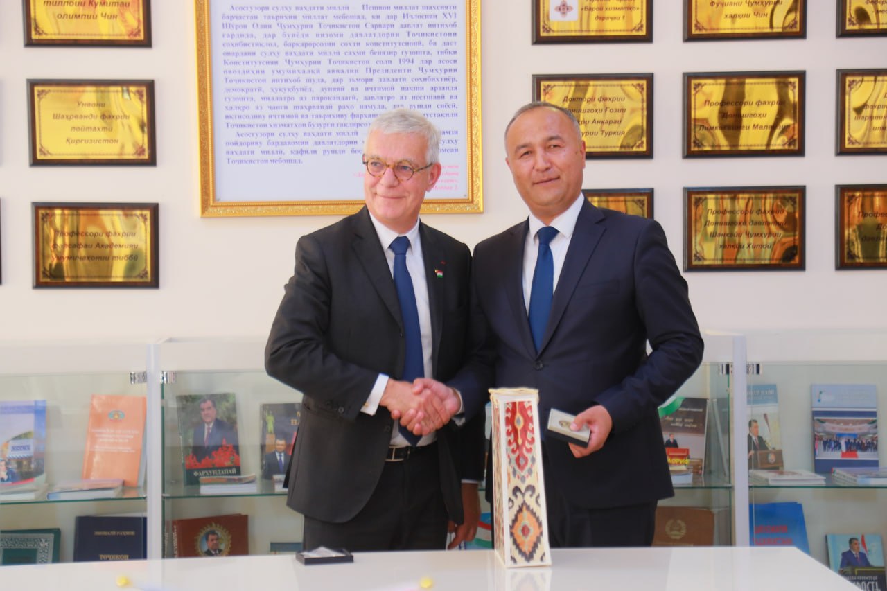 Ташрифи Сафири Фавқулода ва Мухтори Ҷумҳурии Фаронса дар Ҷумҳурии Тоҷикистон ҳамроҳи сенаторони Фаронса ба ДДҲБСТ ва иштироки онҳо дар конференсияи байналмилалии “Муаммоҳои глобалии экологӣ”