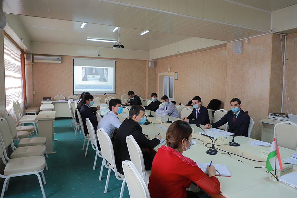Дар идома, асистенти кафедраи ҳуқуқи конститутсионӣ Суннатулло Латипов дар мавзӯи “Нақши Паёми Пешвои миллат дар татбиқи самтҳои асосии сиёсати давлатии ҷавонон” баромад намуда, Паёми Пешвои миллат ва нақши онро дар татбиқи самтҳои асосии сиёсати давлатии ҷавонон зикр намуд.
