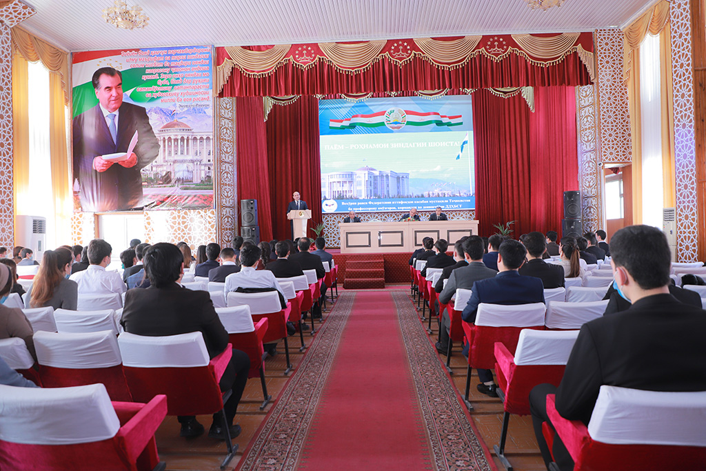 Нахуст ректори донишгоҳ, профессор Шарифзода Муъмин Машокир мулоқотро ифтитоҳ намуда, иброз кард, ки дар низоми муосири давлатдории мо Паёми Президенти Ҷумҳурии Тоҷикистон ҳуҷҷати муҳими расмӣ, барномавӣ ва муайянкунанда буда, яке аз роҳҳои ифодаи равшани рушди иҷтимоию иқтисодӣ ва фарҳангию сиёсии Ҷумҳурии Тоҷикистон мебошад, ки он дарбаргирандаи барномаи мукаммали кори тамоми ниҳодҳо арзёбӣ мегардад. Паём сухани самимии Президенти Ҷумҳурии Тоҷикистон барои ҳар ҳамватан, пайғоми пурнишот барои насли имрӯзу фардо ва муждаи созанда дар роҳи пурифтихори рушди давлатдории тоҷикон мебошад.